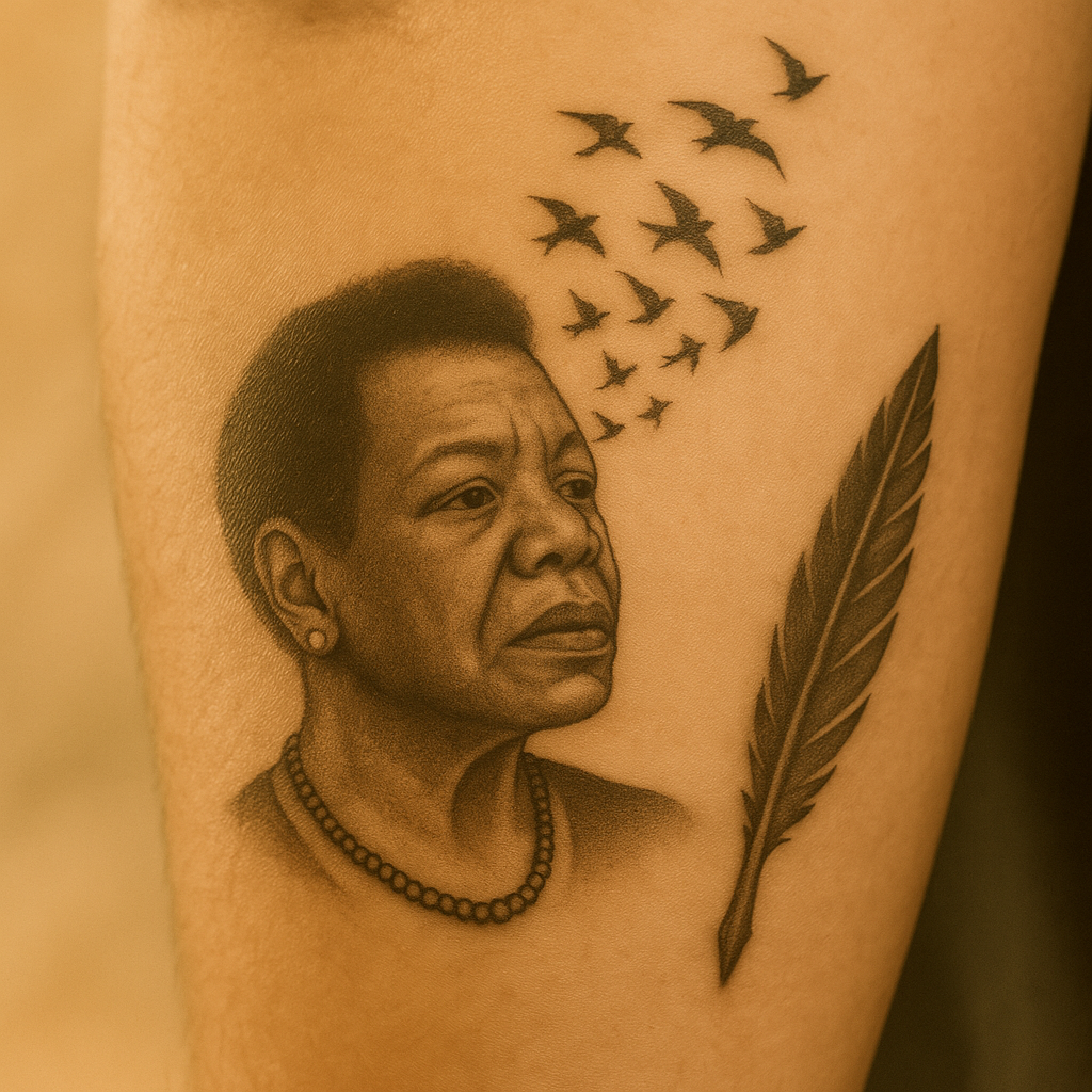 In my darkest seasons, these words felt like a lifeline – a reminder that even when broken down by trauma, I could stand again. This tattoo is a tribute to Maya’s voice, but also to the one I found through struggle: a voice that refuses silence.